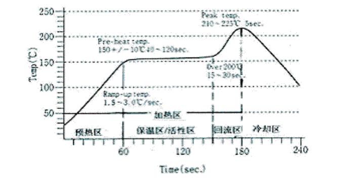 對于所使用錫膏的性能參數(shù)也是必須考慮的因素之一,首先是考慮到其合金的熔點,即回流區(qū)溫度應高于合金熔點的30-40℃。其次應考慮錫膏的活性溫度嘆及持續(xù)的時間,有條件時應與錫膏供應商了解,也可以參考供應商提供的溫度曲線。