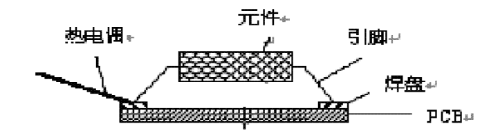 2 、熱電偶的位置與固定熱電偶的焊接位置也是一個應認真考慮的問題,其原則是對熱容量大的組件焊盤處別忘了放置熱電偶,見圖 2 ,此外對熱敏感組件的外殼, PCB 上空檔處也應放置熱電偶,以觀察板面溫度分布狀況。