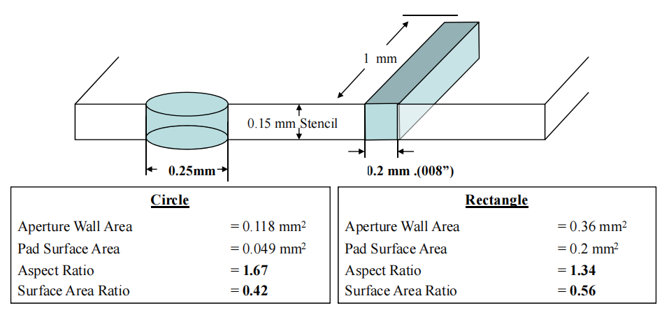 鋼網-方形孔和圓形孔開孔比較